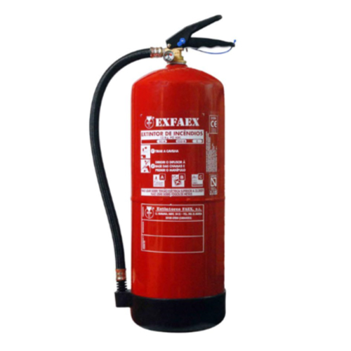 Fire extinguisher with 12kg ABC dry powder capacity, with 43A-233B-C efficiency. The extinguisher is appropriate for use in: factories, cargo trucks, buses, hospitals, etc.