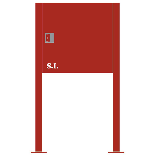 Armário Multiusos e respetivo Suporte Tubo Autoportante para armazenamento de equipamentos S.I., geralmente usado com equipamentos para a poio a hidrantes.